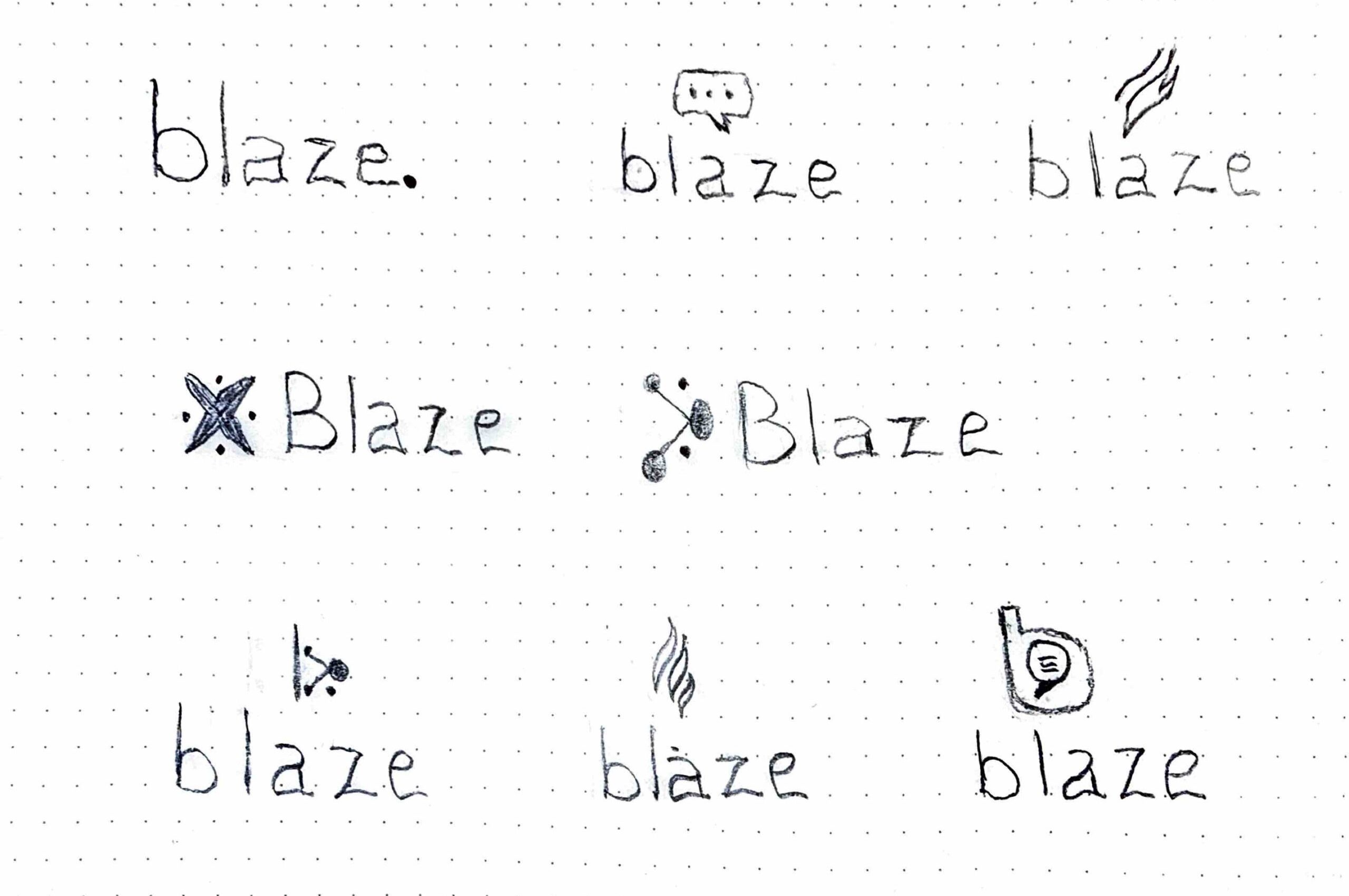 Early sketches explored different visual directions for the Blaze symbol, focusing on themes of energy, conversation, and connection. These explorations helped identify a symbol that felt dynamic yet simple enough to remain recognizable across digital environments.