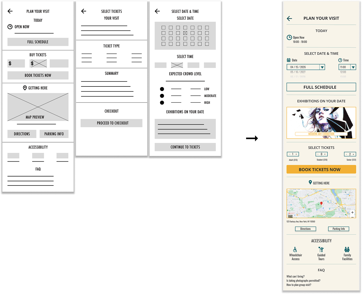 To understand user frustrations, needs, and requirements, I conducted foundational qualitative research through interviews and surveys, focusing on how users plan and engage with arts and cultural spaces. One key insight came from a tech-savvy, visually oriented user who values detailed content, modern interfaces, and efficient planning tools. Their experience highlighted common pain points such as outdated design, slow load times, limited digital resources, and unclear crowd indicators. These findings emphasize the need for streamlined, user-friendly platforms that enhance accessibility, planning, and overall engagement.
